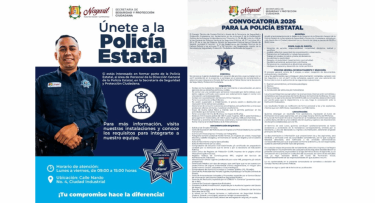 El Gobierno del Estado de Nayarit, a través de la Secretaría de Seguridad y Protección Ciudadana, te invita a integrarte como Agente de la Policía Estatal.