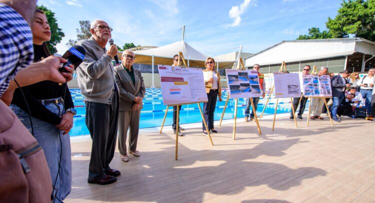El gobernador del estado, Miguel Ángel Navarro Quintero, acompañado de su esposa, la presidenta del Sistema DIF Nayarit, doctora Beatriz Estrada Martínez, supervisó los trabajos de rehabilitación de la alberca olímpica del parque La Loma, en Tepic, un espacio emblemático que durante años permaneció en el abandono.