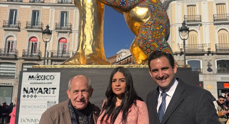 Madrid fue escenario de un encuentro cultural histórico con la develación de una pieza artística intervenida con arte wixárika, instalada frente al emblemático Oso y el Madroño, en la Puerta del Sol. La obra, elaborada por artesanas y artesanos wixárikas, simboliza el hermanamiento entre Nayarit y Madrid, integrando elementos de la cosmovisión ancestral y técnicas tradicionales como la chaquira.