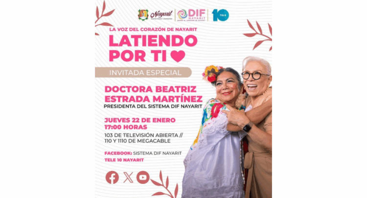 Nos acompañará la doctora Beatriz Estrada Martínez, presidenta del Sistema DIF Nayarit, para compartirnos detalles sobre las nuevas giras en Tepic de, Latiendo en Tu Colonia y el trabajo cercano, constante y comprometido del Corazón de Nayarit con las familias del estado.