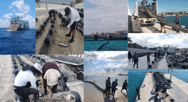 Para continuar con dichas acciones, se mantienen empleadas 16 unidades de superficie, de las cuales uno es un Buque Sargacero Oceánico, 11 Buques Sargaceros Costeros y cuatro Sargaceras Anfibias, de igual forma se cuenta con 16 embarcaciones menores de apoyo, así como 9 mil 500 metros de barreras empleadas para su contención, y se tiene proyectado en coordinación con el Gobierno del Estado, implementar seis mil metros más; mismas barreras que por medidas preventivas, en algunas zonas son retiradas durante temporada de frentes fríos, y se encuentran en etapa de repliegue para brindarles mantenimiento, limpieza, arreglo de desperfectos y cambio de componentes, para asegurar su correcto funcionamiento, y al término de esta temporada, serán recolocadas en las zonas requeridas.
