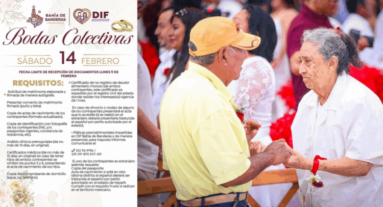 El presidente municipal de Bahía de Banderas, a través del Registro Civil y el Sistema DIF, invitan a las parejas del municipio a participar en las Bodas Colectivas, que se celebrarán el sábado 14 de febrero.