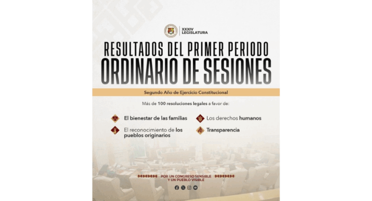 De igual manera, las y los legisladores avalaron 22 decretos, entre los que destacan el declarar el día 5 de septiembre de cada año Día Estatal de la Mujer Indígena, las designaciones y ratificaciones de funcionarios, el Presupuesto de Egresos 2026 y las actualizaciones de tablas de valores municipales.
