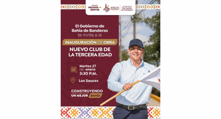 El Gobierno de Bahía de Banderas invita a la ciudadanía a la inauguración del Nuevo Club de la Tercera Edad, una obra pensada para fortalecer la convivencia, el bienestar y la atención de las personas adultas mayores del municipio.