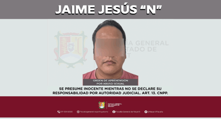 Elementos de la Agencia de Investigación Criminal cumplimentaron una orden de aprehensión en la localidad San Vicente, municipio de Bahía de Banderas contra Jaime Jesús “N”, por su probable participación en hechos que la legislación vigente tipifica como delito de abuso sexual, quedando la identidad de la víctima menor de edad en reserva para salvaguardar su privacidad.