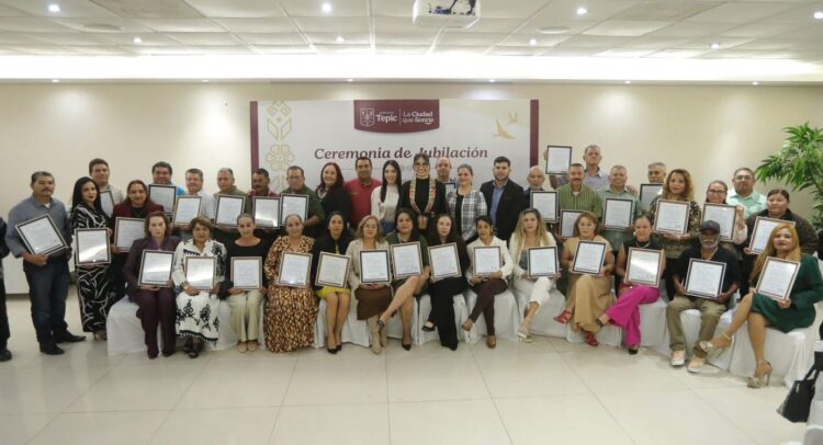 Tepic.- La presidenta municipal de Tepic, Ing. Geraldine Ponce, asistió a la jubilación de 37 trabajadoras y trabajadores del Ayuntamiento, evento en el que destacó la importancia de reconocer el esfuerzo y la trayectoria del personal que ha servido al municipio desde distintas áreas de la administración pública.