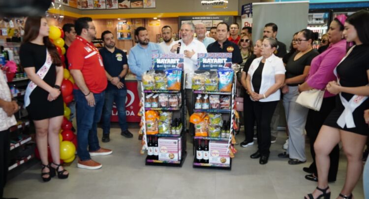 El Gobierno del Estado inauguró el exhibidor exclusivo del programa “Nayarit Produce” en las 94 tiendas OXXO distribuidas en la entidad, como parte de una estrategia para fortalecer la economía local, promover el consumo de productos nayaritas y ampliar los espacios de comercialización para emprendedoras y emprendedores del estado. En representación del gobernador Miguel Ángel Navarro Quintero, el secretario de Economía, César Lara Fonseca, encabezó el arranque de esta iniciativa.