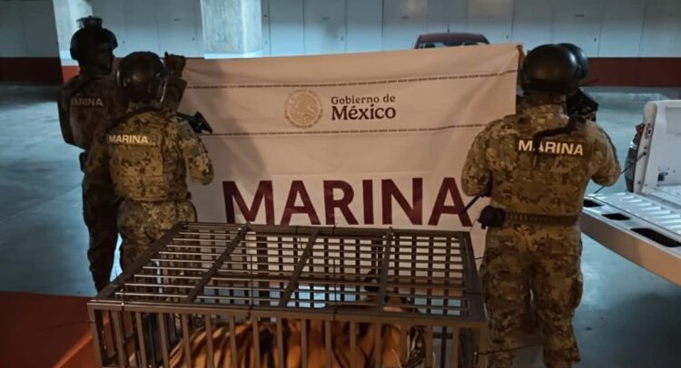 La secretaria de Marina en coordinación con la Fiscalía General de la República y la Agencia de Investigación Criminal, aseguran un Tigre de la especie “Phantera Tigris”, en Puerto Vallarta