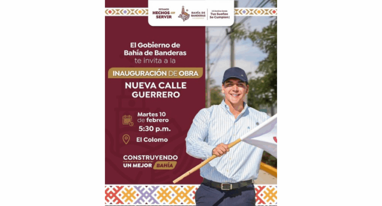 ¡Únete a la celebración! El Gobierno de Bahía de Banderas, el cual encabeza el presidente Héctor Santana, te invita a la inauguración de la Nueva Calle Guerrero en el Colomo.