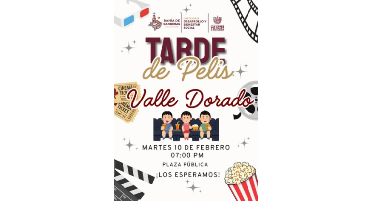 ¡Hoy martes 10 de febrero, ven a disfrutar de una maravillosa Tarde de Pelis en Valle Dorado!