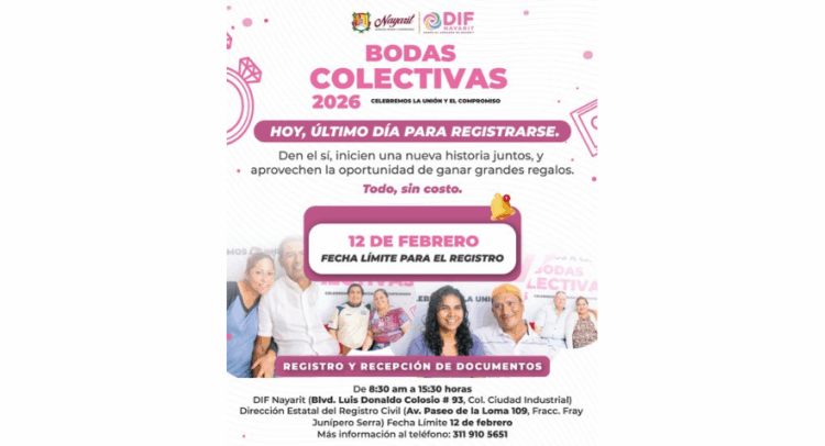 Hoy es el último día para registrarte en las Bodas Colectivas 2026, donde además podrás participar por increíbles regalos. 🎁