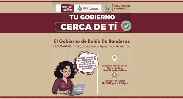 El Gobierno Municipal de Bahía de Banderas, que encabeza el presidente municipal Héctor Santana, a través de OROMAPAS y la Jefatura de Fiscalización y Apremios, realizará una jornada de atención ciudadana para facilitar el pago de predial y agua potable.