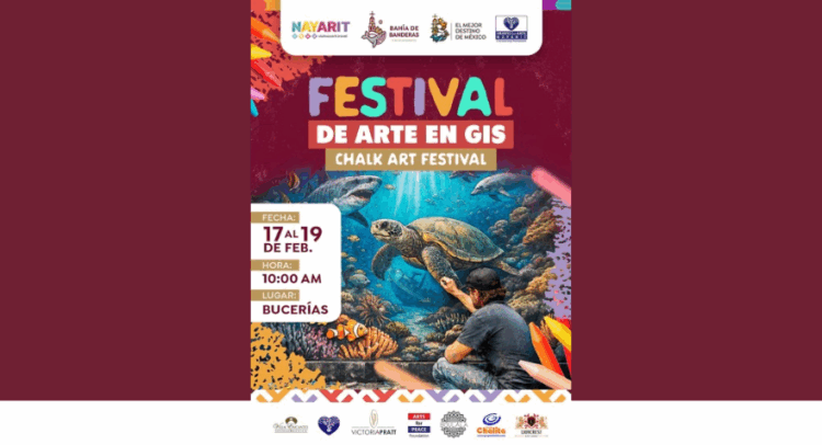 Del 17 al 19 de febrero, a partir de las 10:00 de la mañana, Bucerías será sede del Festival de Arte en Gis «Chalk Art Festival», un evento que reunirá artistas y visitantes en torno a la creatividad y la expresión cultural al aire libre.