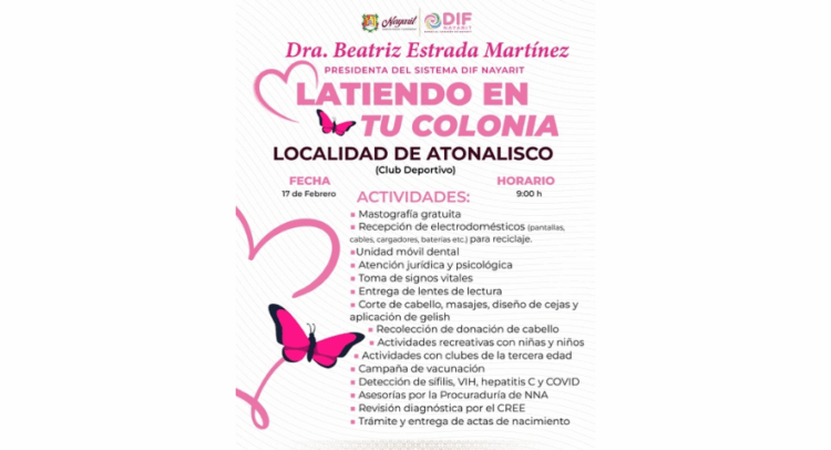 La gira Latiendo en Tu Colonia llegará este martes a la localidad de Atonalisco para acercar servicios y beneficios totalmente gratuitos a las familias.