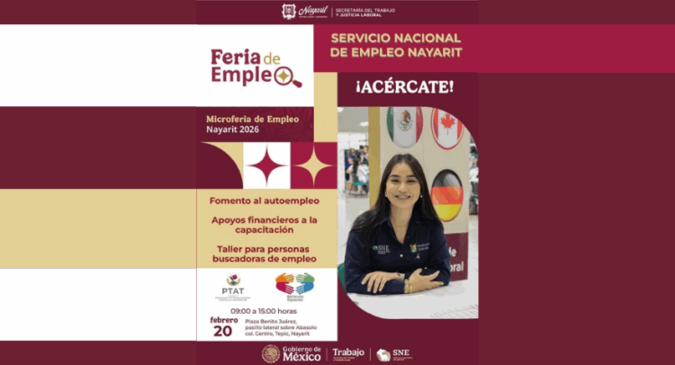 El Gobierno del Estado, a través de la Secretaría del Trabajo y Justicia Laboral, te invita a la Microferia de Empleo Nayarit 2026.