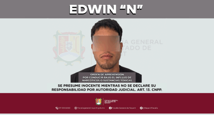 La Fiscalía General de Nayarit a través de la Agencia de Investigación Criminal ejecutó una orden de aprehensión en la localidad San Vicente, municipio de Bahía de Banderas contra Edwin “N”, por su presumible participación en hechos que para la ley configuran el delito de tránsito ejecutado por conductores de vehículos en su modalidad de conducir bajo el influjo de narcóticos o sustancias tóxicas, cometido en agravio de la sociedad.