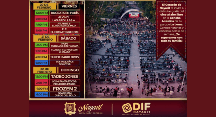 Este fin de semana, la doctora Beatriz Estrada Martínez y el Corazón de Nayarit te invitan a ti y a tu familia y amigos a disfrutar de un momento lleno de entretenimiento y mucha diversión en el cine al aire libre de la Concha Acústica del Parque La Loma.
