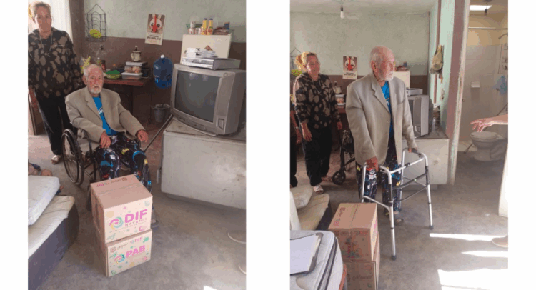 Gracias a la sensibilidad y compromiso de la doctora Beatriz Estrada Martínez, presidenta del Sistema DIF Nayarit, la institución brinda apoyo integral al señor José Sandoval Arellano, de 89 años de edad, quien recibió una silla de ruedas, una andadera y despensas; además, se le harán llegar pañales y otros apoyos que contribuyan a mejorar su calidad de vida.
