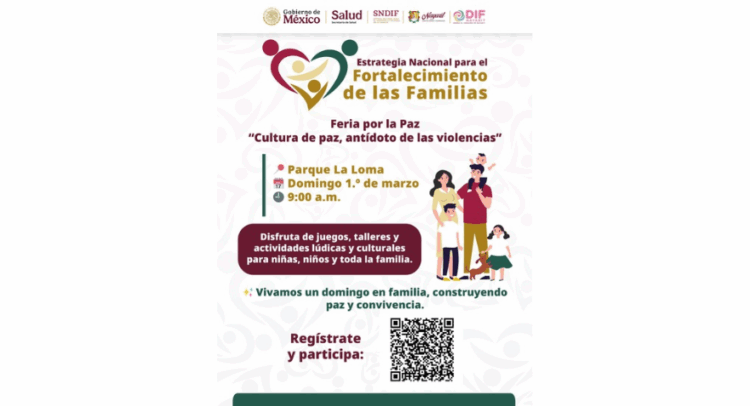 Beatriz Estrada y el Sistema DIF Nayarit te invitan a la Feria por la Paz “Cultura de paz, antídoto de las violencias”, un espacio donde niñas, niños y familias podrán disfrutar de actividades recreativas y culturales que fomentan la sana convivencia, en un ambiente de alegría, respeto y armonía para todas y todos.