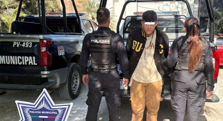 En la rápida atención a un reporte ciudadanos que denunciaba supuestas detonaciones desde un vehículo Aveo a exceso de velocidad, la policía de Puerto Vallarta detuvo a Cristopher «N» de 18 años, por el presunto delito de narcomenudeo, y a quien después de hacer una inspección de acuerdo a la ley, además de estar en evidente estado de ebriedad, le encontraron en su bolsillo una bolsa de plástico llena de una sustancia con las características de la droga llamada «Cristal».
