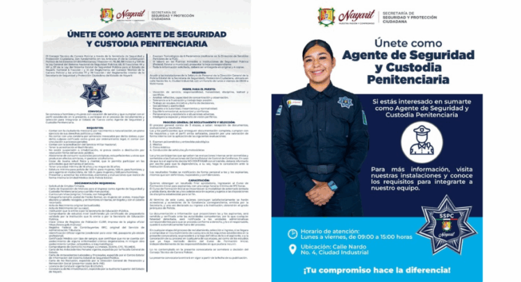 El Gobierno del Estado de Nayarit, a través de la Secretaría de Seguridad y Protección Ciudadana, te invita a formar parte del proceso de reclutamiento para ser Agente de Seguridad y Custodia Penitenciaria.