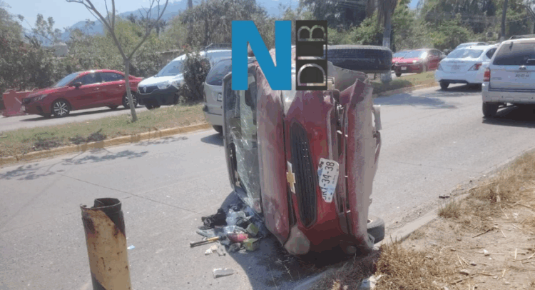 Aparatoso accidente ocurrió la tarde de este jueves sobre la avenida México en su cruce con la avenida Los Poetas en donde un coche quedó volcado luego de chocar contra una camioneta.