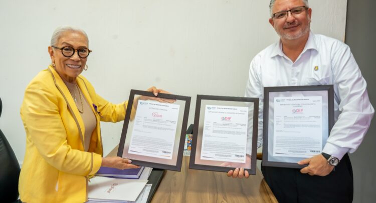 La presidenta del Sistema DIF Nayarit, doctora Beatriz Estrada Martínez, recibió de manos del secretario de Desarrollo Económico y Social de Nayarit, César Octavio Lara Fonseca, los títulos de registro de tres marcas institucionales gestionadas por el organismo ante el Instituto Mexicano de la Propiedad Industrial.
