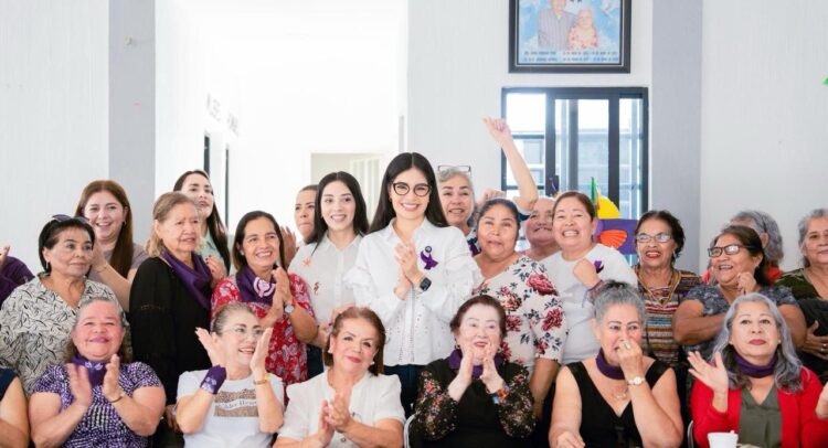 Tepic.– En el marco del Día Internacional de la Mujer, la presidenta municipal de Tepic, Geraldine Ponce, convivió con las integrantes del Club de la Tercera Edad Sonrisa Feliz, a quienes reconoció como ejemplo de trabajo, fortaleza y dedicación para las nuevas generaciones.