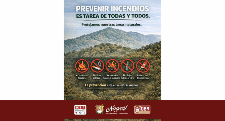El Gobierno del Estado de Nayarit recuerda que prevenir incendios forestales es tarea de todas y todos. Cuidar las áreas naturales implica no encender fogatas, no tirar colillas, no quemar basura o pastizales, no dejar botellas de vidrio y evitar el uso de pirotecnia.