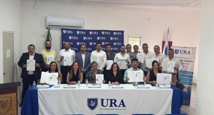 Un grupo de funcionarios del Ayuntamiento de Bahía de Banderas concluyó este día un diplomado en Administración Pública impartido por la Universidad Regional de los Altos (URA), en una jornada que dejó claro el interés de varios integrantes del gobierno municipal por fortalecer su preparación académica mientras ejercen responsabilidades dentro de la administración encabezada por el alcalde Héctor Santana. Entre ellos destacó la participación del secretario del Ayuntamiento, Israel Santillán, quien aparte de ser graduado en el diplomado, compartió un mensaje sobre la importancia de la capacitación en el servicio público.