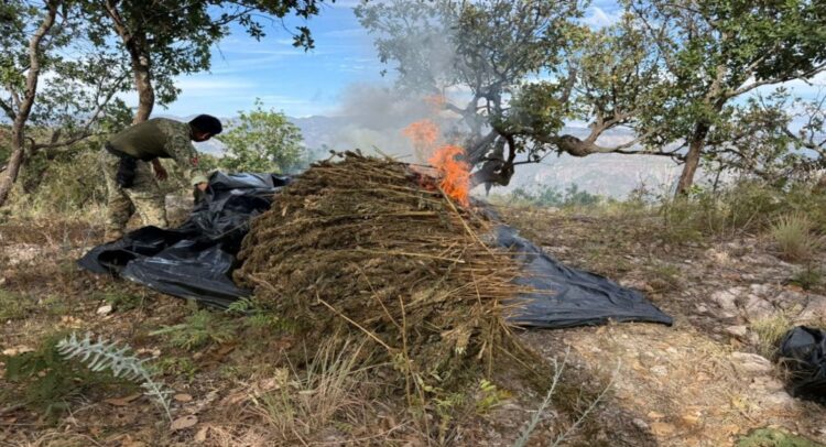 En acciones realizadas en las últimas horas, personal del Ejército Mexicano localizó y destruyó cultivos de enervantes en la zona serrana, además de desmantelar un campamento presuntamente utilizado por integrantes de la delincuencia organizada, destruir áreas de secado de sustancias ilícitas y asegurar cargadores y cartuchos de distintos calibres.