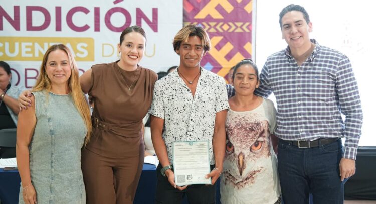 Durante la Rendición de cuentas, autoridades municipales hicieron entrega oficial del documento al joven Ismael, lo que le permitirá concluir su proceso de inscripción y participar en las Olimpiadas CONADE.