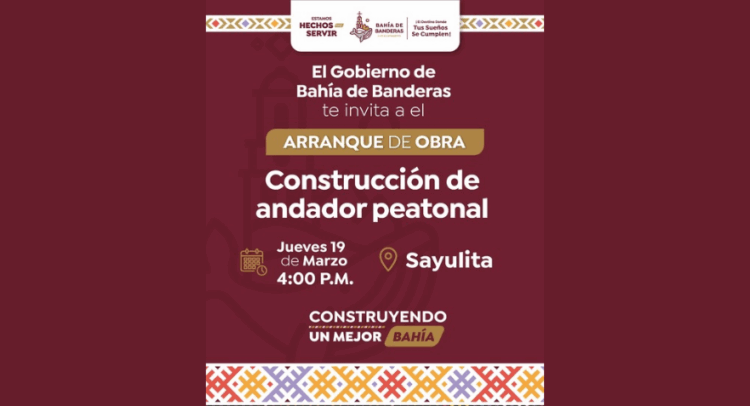Este jueves 19 de marzo se llevará a cabo el arranque de obra para la construcción de un andador peatonal en la localidad de Sayulita.