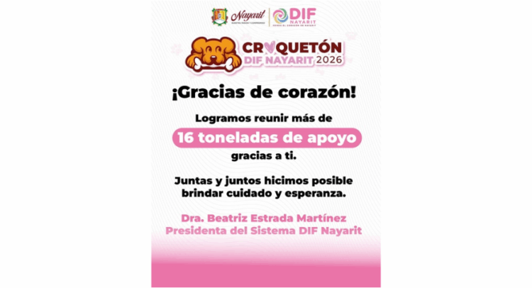 El Sistema DIF Nayarit, encabezado por la doctora Beatriz Estrada Martínez, agradece de corazón a todas y todos quienes hicieron posible el Croquetón DIF Nayarit 2026.