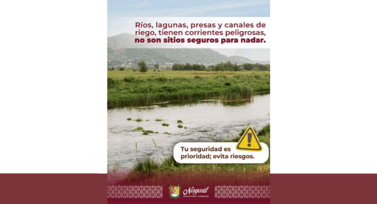 El Gobierno del Estado de Nayarit exhorta a la ciudadanía a no ingresar a ríos, lagunas, presas y canales de riego, ya que presentan corrientes peligrosas.