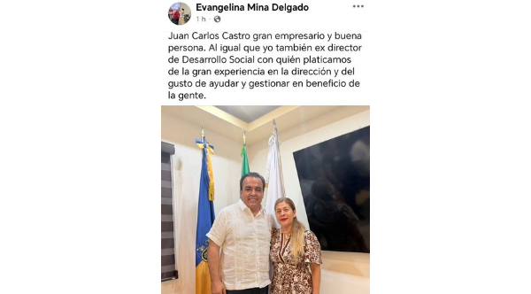 En un encuentro que evidenció cercanía política y respeto institucional, Evangelina Mina Delgado se reunió con el empresario Juan Carlos Castro, a quien reconoció públicamente como una figura destacada en el ámbito social y empresarial de la región.