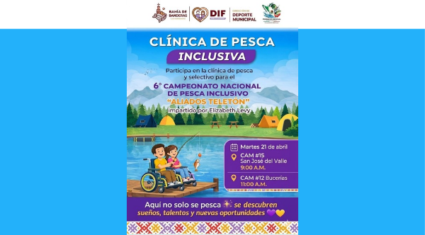 El Gobierno de Bahía de Banderas, a través del Sistema DIF Municipal y la Dirección de Deporte, en coordinación con la Federación Nacional y Fundación Teletón, convoca a participar en la “Clínica de Pesca Inclusiva” y selectivo para el 6º Campeonato Nacional de Pesca Inclusivo “Aliados Teletón”.