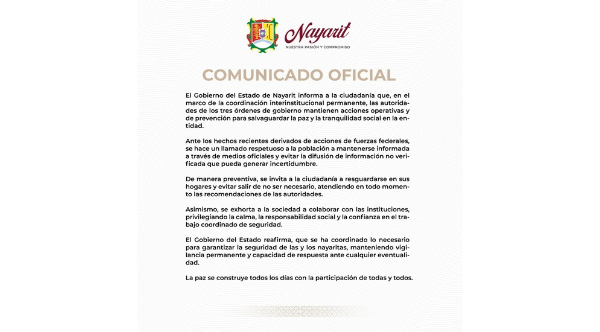 Asimismo, se exhorta a la población a no difundir información falsa que pueda generar incertidumbre, privilegiando la responsabilidad social. Las autoridades reafirman que mantienen vigilancia permanente y capacidad de respuesta para garantizar la seguridad y tranquilidad de todas las familias nayaritas