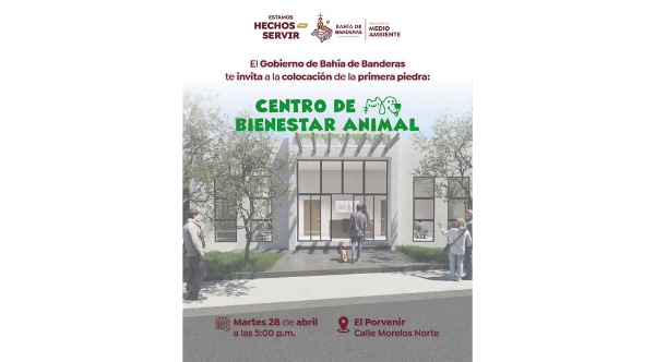 El Gobierno Municipal de Bahía de Banderas y la Dirección de Medio Ambiente, invitan a la ciudadanía a la colocación de la primera piedra del Centro de Bienestar Animal, un proyecto enfocado en la atención, protección y cuidado de los animales en el municipio.